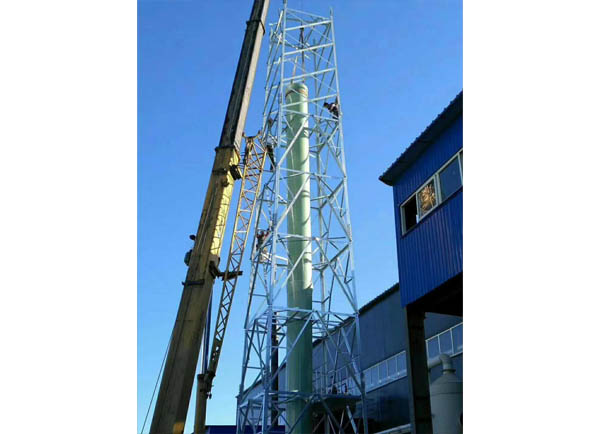 由于很多煙囪的工作溫度較高(一般為50-180℃),煙氣成分復(fù)雜,一般樹脂不能滿足其要求,所以選擇內(nèi)襯樹脂及結(jié)構(gòu)層樹脂的關(guān)鍵是能否滿足在高溫情況下的腐蝕要求,結(jié)構(gòu)層樹脂選材也需適應(yīng)耐高溫要求,還需考慮結(jié)構(gòu)樹脂的斷裂延伸率與內(nèi)襯樹脂的斷裂延伸率相匹配。考慮到安裝的方便性,們根據(jù)客戶安裝要求,將煙囪進(jìn)行分段加工,然后在現(xiàn)場(chǎng)組裝;也可根據(jù)客戶的意愿來設(shè)計(jì)安裝工藝。